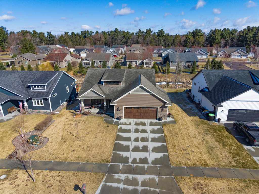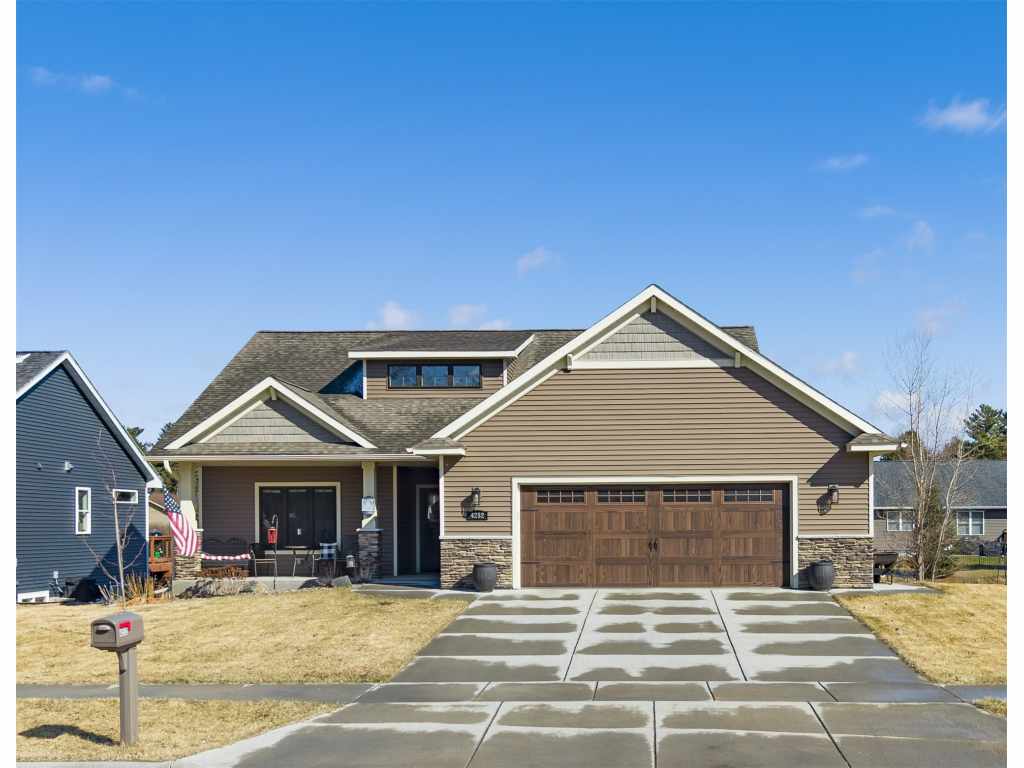 Welcome home to this beautifully built property in Eau Claire’s highly desirable Southside neighborhood! This thoughtfully designed home features an open concept floor plan with quality finishes throughout, including granite countertops, engineered hardwood flooring, and elegant crown molding, all centered around a stunning stone fireplace that creates a warm and inviting living space. Enjoy the convenience of main floor laundry and a spacious primary suite, offering comfort and functionality for everyday living. Step outside to a large, partially covered deck, perfect for entertaining or relaxing. The finished lower level expands your living space with a generous family room, wet bar, additional bedroom, and a nonconforming bonus room (no egress window). Additional highlights include a no step entrance, irrigation system, and a layout designed for easy living both inside and out. Conveniently located near the mall, a variety of restaurants, shopping options, walking trails, and Robbins Elementary, this home offers the perfect blend of comfort and accessibility. Don’t miss your chance to own this move in ready home in one of Eau Claire’s most sought after locations!