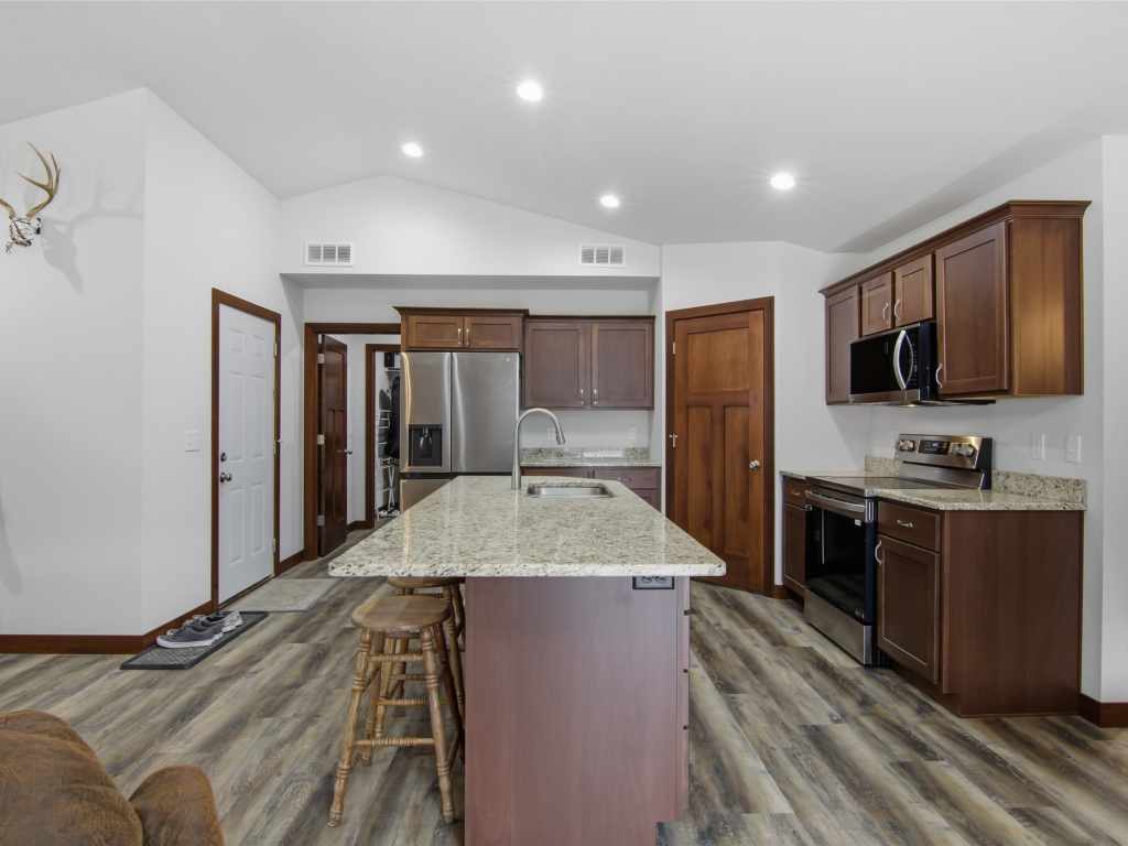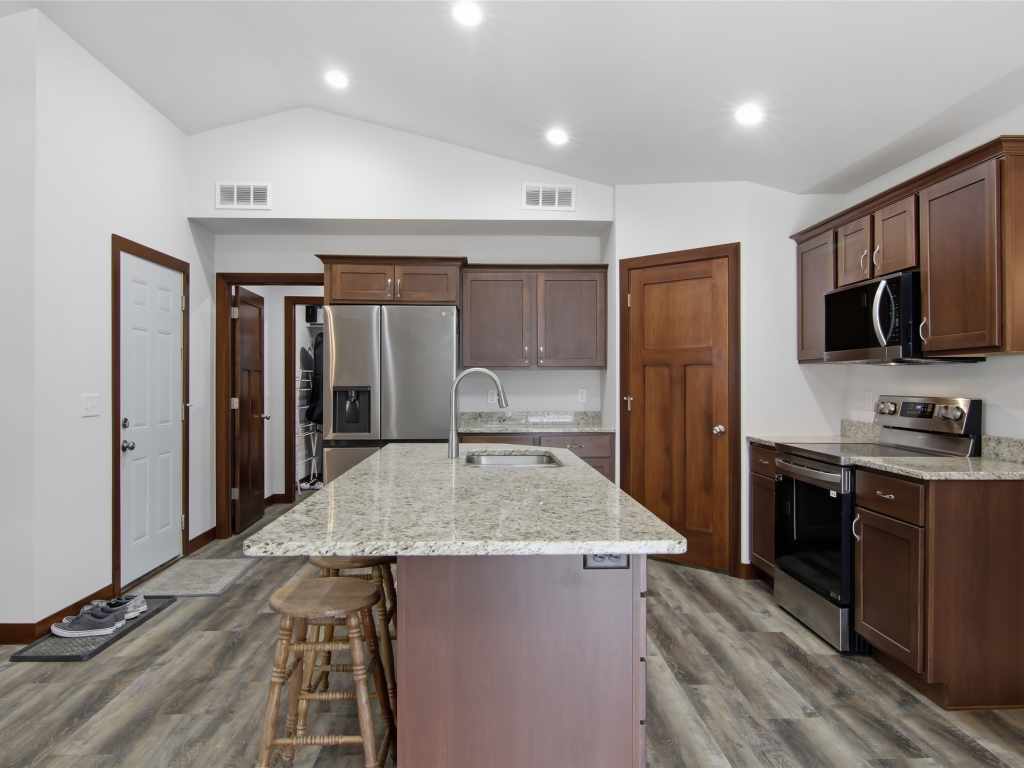 Enjoy no stress living in this beautifully finished Menomonie twin home. This zero entry home features vaulted ceilings, an open floor plan, stainless appliances, quartz countertops, custom cabinetry and high-end commercial grade flooring. The owner's suite has a step-in shower and walk-in closet which connects to the laundry room. The second bedroom has LVP flooring, perfect for a guest room or as an office, home gym or bonus room. 2 car attached garage is insulated. No HOA fee. **Some pictures are from when house was newly built in 2024**