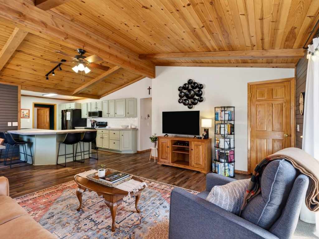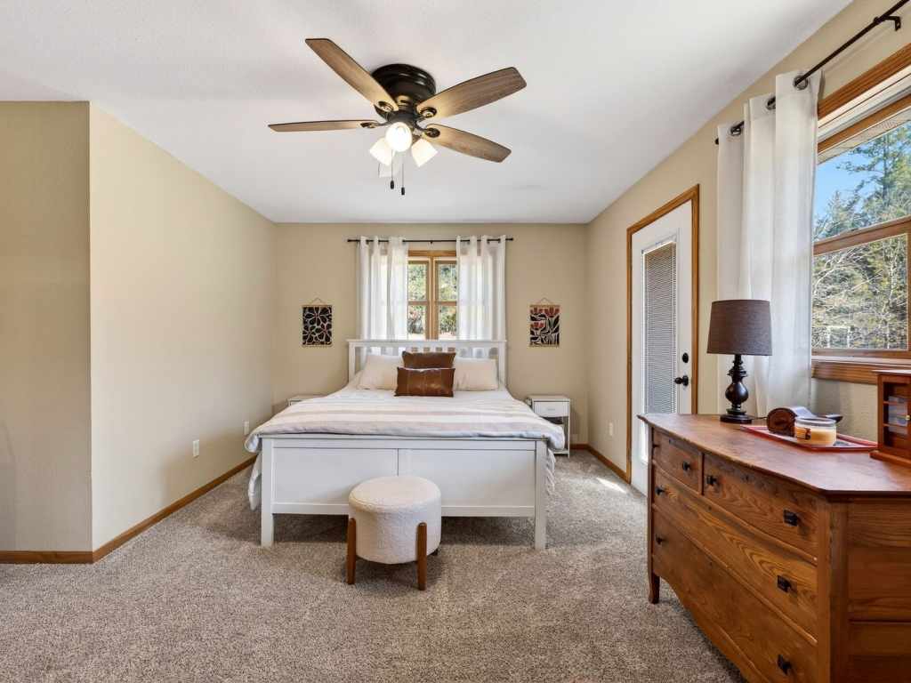 Set on 2 acres just 10 minutes north of Spooner, this 4 BR/2 BA home offers a great country setting with a convenient location. The home is immaculate and move-in ready, featuring a welcoming entry and a comfortable layout. The living room offers a vaulted ceiling and a warm, inviting feel, while the interior is tastefully updated with a nice balance of knotty pine and painted finishes for a clean, modern Northwoods look. Updated light fixtures, newer appliances, flooring, kitchen remodel, and several other thoughtful improvements throughout make this home easy to step into and enjoy. All four bedrooms, including a primary suite, are on the main level. The fourth bedroom is currently used as a bedroom but would also make a great home office. The lower level is unfinished but clean and very usable, offering excellent storage or future finishing potential. Outside, the property includes a 2 car garage, maintenance-free siding, a deck for relaxing or grilling, and a fenced garden area. Located near ATV and snowmobile trails, lakes, the Namekagon River, and county land, this property offers easy access to year round recreation.