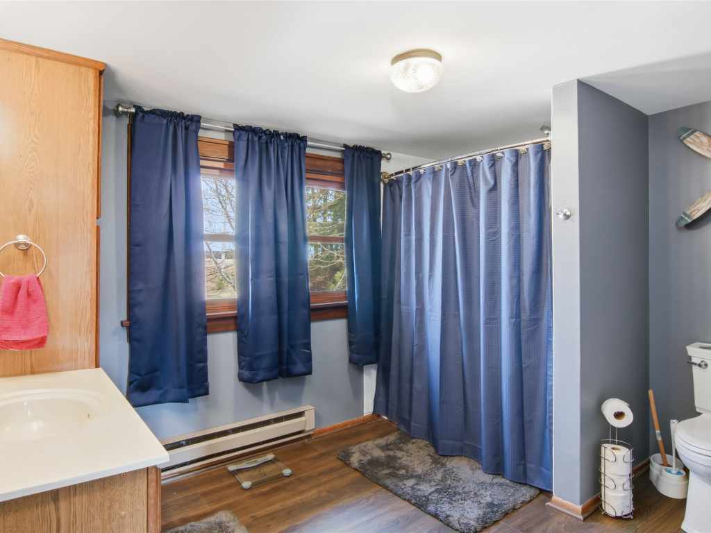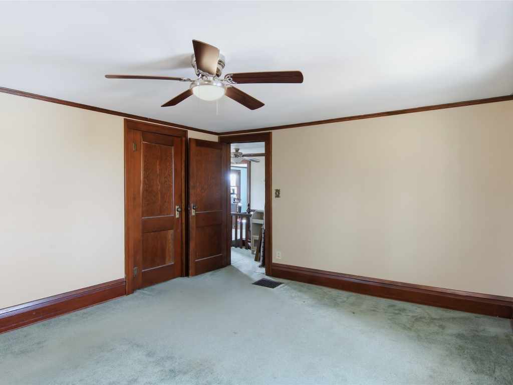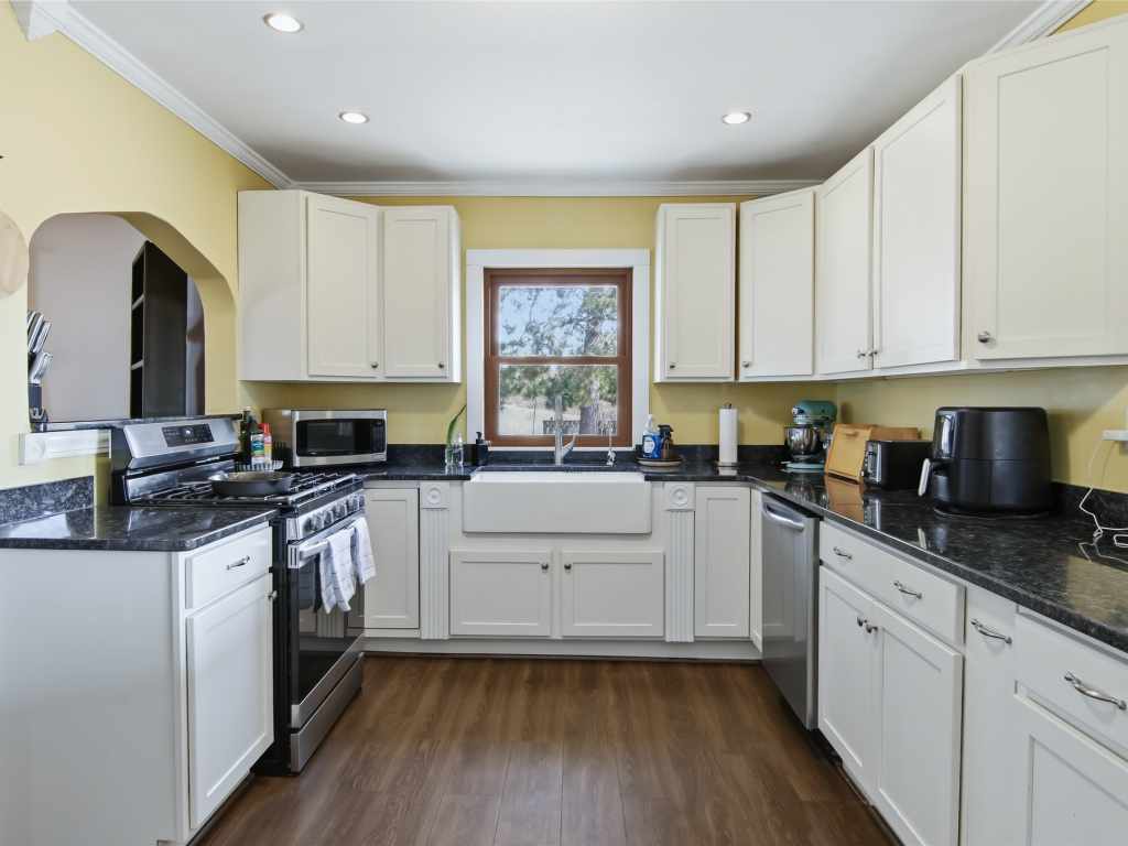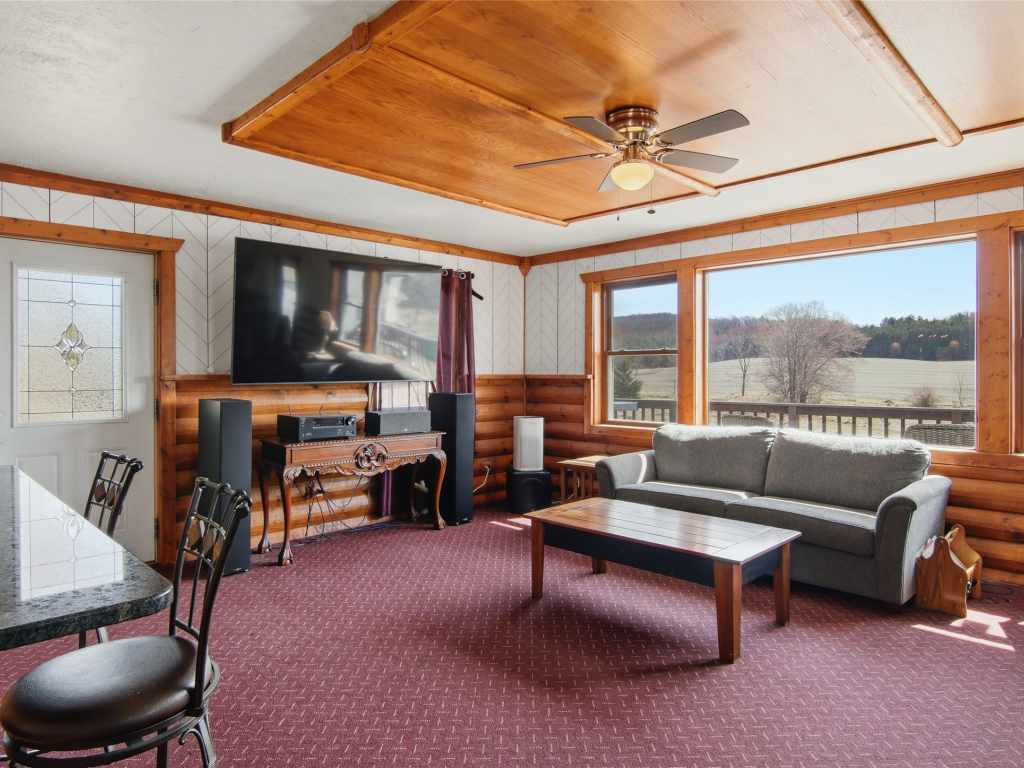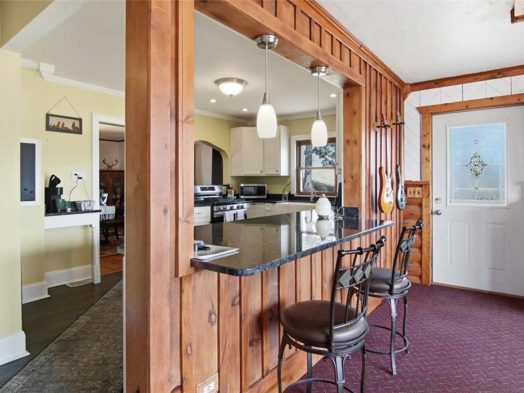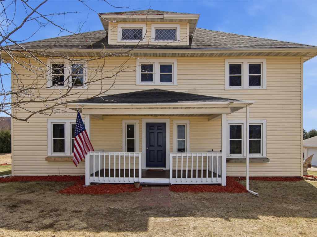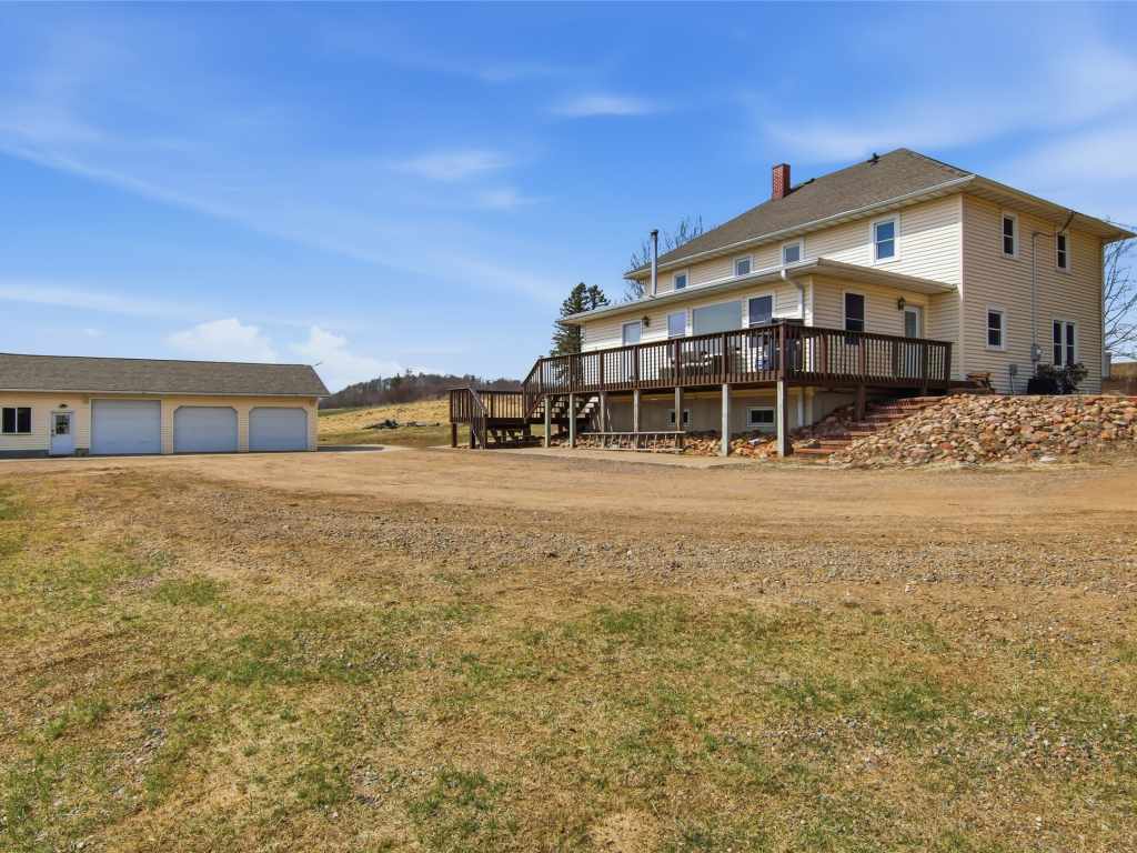 Charming two-story farmhouse on 4.7 acres just a few minutes from Hwy 64, and Hwy 53 blends modern convenience with country living. Four upstairs bedrooms (full bath), main-floor bedroom, main floor 1/2 bath, & laundry, generous walk-in closets, rich wood floors, and an updated kitchen with Schrock maple soft-close cabinets, farmhouse sink, granite counters, and gas range. Spacious living room with a cozy wood-burning stove and direct deck access adjacent to the kitchen, perfect for entertaining. Enjoy mornings on the quaint front porch, afternoons on the large deck or paver patio, and fresh fruit from apple trees, blackberries, raspberries, plus wild asparagus. Wildlife abounds: pheasants, ducks, deer hunting, and a spring-fed creek. Upgrades include but not limited to: septic (2012), insulation, electric, windows, siding, roof (2018), A/C (2021), and exterior LED motion lighting. Garden-ready soil area, and a huge 36x48 heated shop with (2) 8' and (1) 9' overhead doors, three 220V circuits, air-compressor line, curtain system, car lift and extra concrete parking for 2–3 cars. RARE FIND! Schedule your private showing today and claim your very own country retreat!