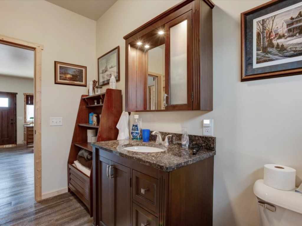 Built in 2019 by Tim Brion, the home sits on a slab for easy, low-maintenance living. The open-concept layout is enhanced by custom hickory kitchen cabinets, durable LVP flooring, alder 3-panel doors, and energy-efficient 2x6 exterior walls with added insulation. A metal roof adds long-term durability, while in-floor boiler heat and a large wall A/C unit keep the home comfortable year-round. A Reliance backup power switch is already in place for generator use.