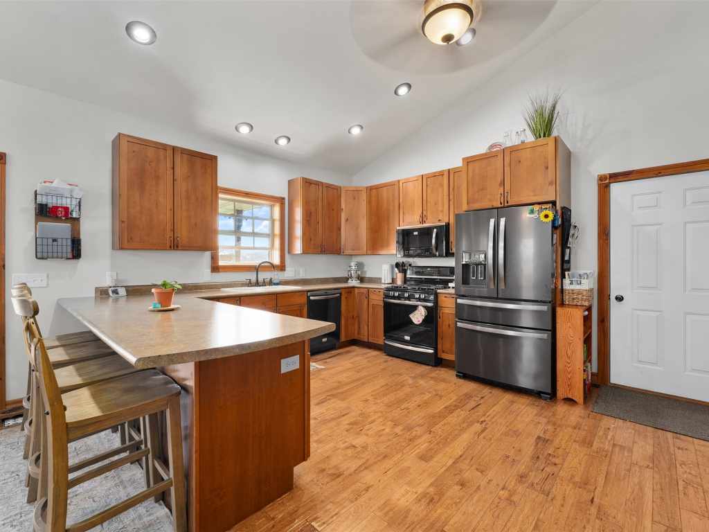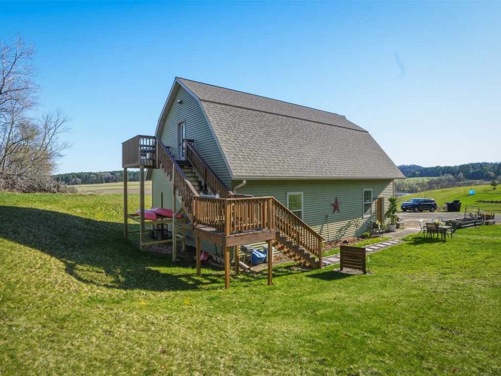 Experience country living at its finest with this exceptional 3.2 acre property. This beautifully designed home welcomes you with a covered front porch, perfect for taking in the fantastic countryside views. Inside, the home feels airy and expansive thanks to the vaulted ceilings that flood the home with natural light. Custom kitchen cabinetry, main floor laundry and a thoughtful layout with 3 bedrooms and 1.5 bathrooms. Home has beautiful high end finishes, freshly painted throughout and is equipped with in-floor heat hookup. This property also offers a massive 30x45 insulated pole shed. Featuring heated floors, the large workshop area includes a bar area, making it the ultimate space for projects or entertaining. The Guest Suite / Airbnb: Located above the workshop this 1 bedroom, 1 bathroom suite is currently operating as a successful Airbnb. Use it as a turnkey rental business, a private in-law suite, or a premium guest house for visiting friends and family. Don't let this unique property pass you by!